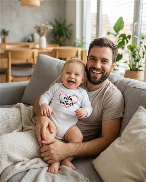 Originální bavlněné kojenecké body s dlouhým rukávem New Baby, s vtipným nápisem celý tatínek. Barvy použité k potisku jsou certifikované a vhodné pro miminka. Je vyrobeno z příjemného a kvalitního materiálu, ve kterém se bude Vaše miminko cítit příjemně. Body má zapínáni na cvočky na ramínku a mezi nožičkami, což usnadňuje oblékání a přebalování. Dopřejte Vašemu miminku vyniknout v originálním body. Složení: 100% bavlna. Rozměry: obvod kolem hrudníku cca 50 cm, délka rukávu cca 26 cm, celková délka cca 42 cm.<BR>Produkt české značky